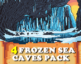 4 beautiful Frozen Sea Caves Backgrounds Assets - Pixelart / Pixel Art sprite Fantasy Cave Dungeon Pack RPG