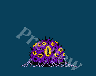 Four large, well-animated pixel art monsters + four small pixel art monsters!