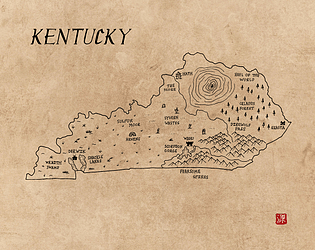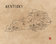 Labeled and blank versions of Kentucky as a fantasy map, on parchment and in black/white