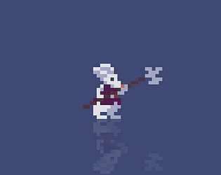 The complete sprite sheets with walk, idle, attack etc animation for a pixel art rabbit halberdier character.
