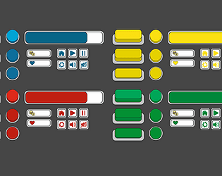 Versatile colorful UI buttons, ready for multiple 2D/3D games.-For Aseprite