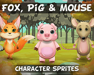 Fox, Pig and Mouse 2D Sprites for 2D video game