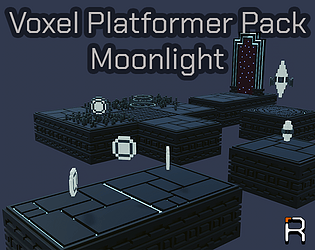 An asset pack in voxel style with a mainly blue and silver color palette