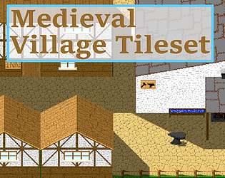 Top down 2D tile atlas for small medieval village. Includes Inn and Blacksmith