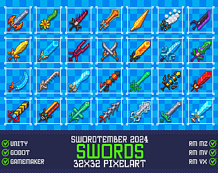 Swordtember 2024 Swords 32x32 Pixelart Icons