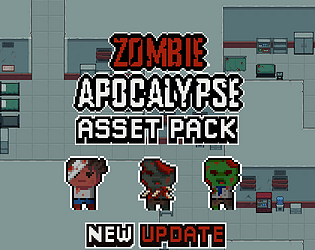 A Zombie Apocalypse pack that includes tilesets, animated characters, decors, UI, weapons and effects!