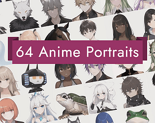 Anime portraits at a variety of resolutions, including fantasy, sci-fi, modern day, and 6 animals. For funsies.
