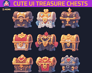โ"Cute Vector Treasure Chests Assets UI" refers to a collection of 9 adorable treasure chests in a vector format.