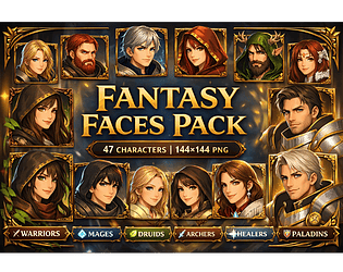 A complete fantasy face pack: Warriors, Mages, Druids, Archers, Healers + 3 Paladins