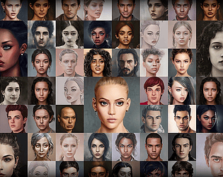 This package contains over 1300 character portraits created using AI, in multiple styles.