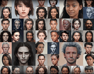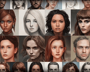 This package contains over 1300 character portraits created using AI, in multiple styles.