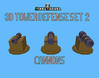 Set of Low poly Cannons for a 3d adventure or tower defense game