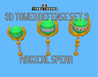 Set of Low poly Magical Spears for a 3d adventure or tower defense game