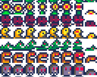 In this FREE asset pack you have access to weird enemies, tropical fruit, and wonky buildings.