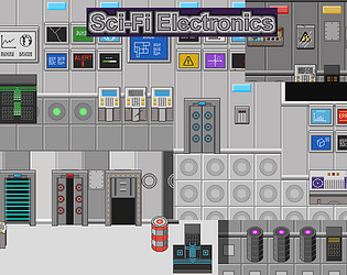 A collection of sci-fi electronics drawn in 2D pixel art style