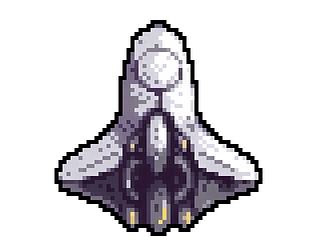 Animated pixel-art spaceship with booster effects, perfect for 2D space games.