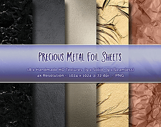 18 foil textures in shimmering gold, silver, copper, and more, with solid + seamless styles