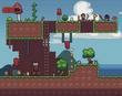 A pixelart tileset inspired by modern day platformers in a grassland or forest environment.