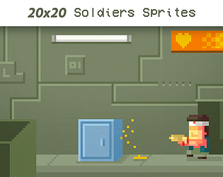 Pixelart graphics/sprites featuring 2 solidiers with 5 animations each