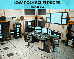 12 low-poly sci-fi control room props: consoles, screens, servers, holo table. Perfect for Unity, Unreal, Godot.