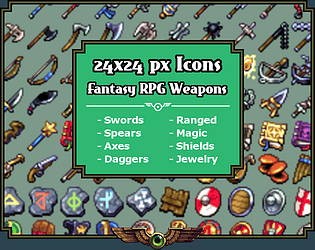 48 different 32x32 icons for fantasy RPGs that are compatible for use in RPG Maker MV!
