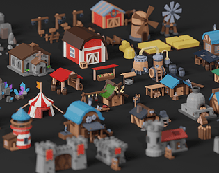 Lowpoly Village Town Exteriors Environment Big Asset Kit