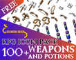 A 16x16, 32x32 and 64x64 beautiful weapon icon pack for your game to use