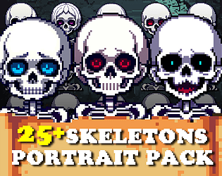 Halloween Skeletons Portrait Pack Asset - Pixelart / Pixel Art sprite Bust Skulls RPG Visual Novel
