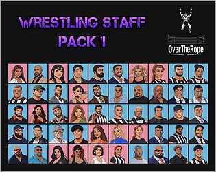 50 HD staff member graphics for games, projects—includes with/without backgrounds, perfect for wrestling sims.