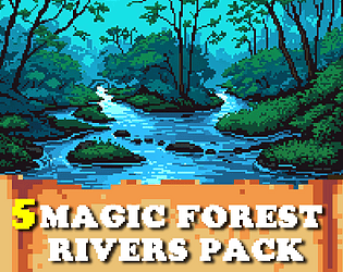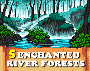 4 Beautiful Magic Forest Rivers Backgrounds Assets - Pixelart / Pixel Art sprite Forest Pack RPG