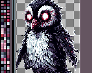 Pixel animation and sound FX for owl-type monster enemy. Includes idle, move, attack, hit, die, effects.