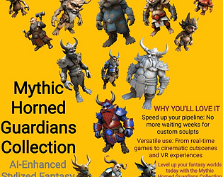 Mythic Horned Guardians AI‑Generated 3D Model Pack | Stylized Fantasy Characters