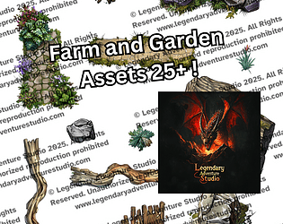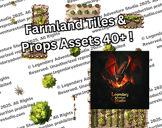 40+ stylized farmland assets — crop tiles, planters, trees, barrels, crates & clutter. PNG + Dungeondraft formats.