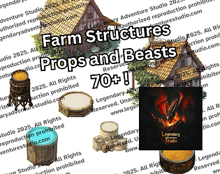 70+ stylized farm structures, clutter, and beasts of burden for rural maps. Includes PNGs + DungeonDraft pack.