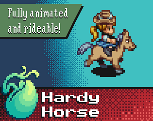A fully animated and rideable horse sprite ready for an action RPG or farming sim.