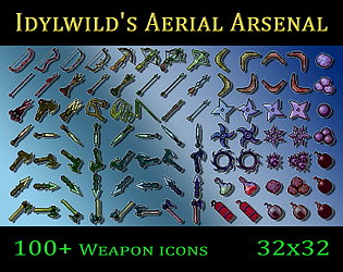 100+ High-quality, hand-pixeled ranged weapon icons and explosion animations
