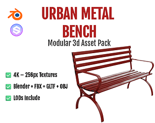 Modelo de banca metálica con texturas 4k lista para ser usada en videojuegos