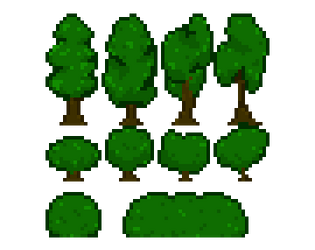 Highly detailed pixel art trees, perfect for backgrounds in platformers, visual novels, and illustrations