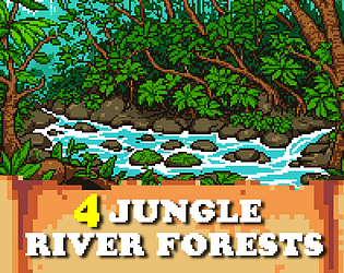 4 beautiful Jungle Forest River Backgrounds Assets - Pixelart / Pixel Art sprite Forests Pack RPG