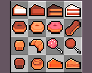16x16 Bakery & Cafe Icon Pack, which includes 340+ sprites featuring a wide variety of bread, desserts, beverages, etc.