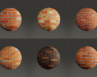 A collection of 13 stylized PBR brick textures in various styles and shapes.