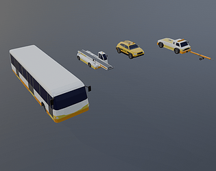 Small collection of airport ground vehicles, low poly. Game ready, with some parts movable.