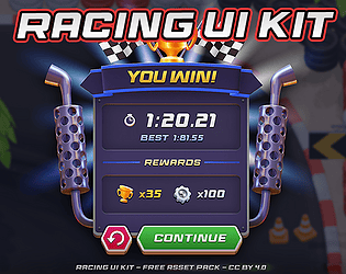 A production-ready racing game UI kit. Includes many elements. Free to use under CC BY 4.0.