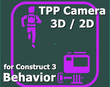 Third-person camera for Construct 3. Follows any object from behind using the built-in 3D Camera.