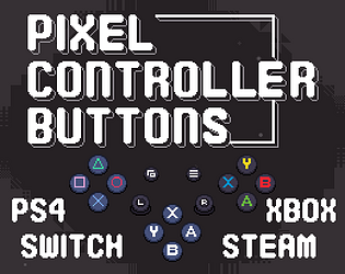 A set of 98 pixelart icons from XBOX, PS4, Switch gamepads & KB/M you can use in your game's UI prompts.