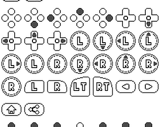 A tiled image of a generic controller 32x32 and 16x16 pixel art prompts.