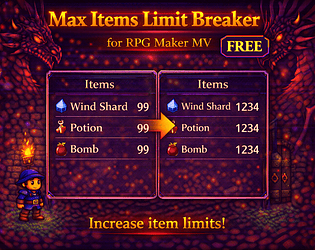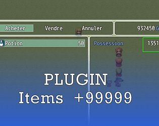 RPG Maker MV plugin that allows you to set a custom maximum item limit (100, 999, 9999 or more).