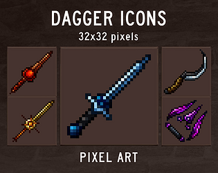 Explore game assets tagged dagger and Pixel Art on itch.io. Pixel Art refers to the charming, simplistic, retro/renaissance style of very-low-resolution graphics, such as from the · Upload your game assets to itch.io to have them show up here.