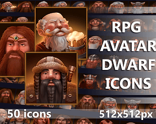 Dwarf RPG Character Portraits Icon Pack for your game projects