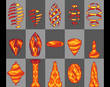 A set of 10 pixel art animated magic effects with icons. 2 Fire, 2 Earth, 2 Wind, 2 Water, Portal, Explosion.